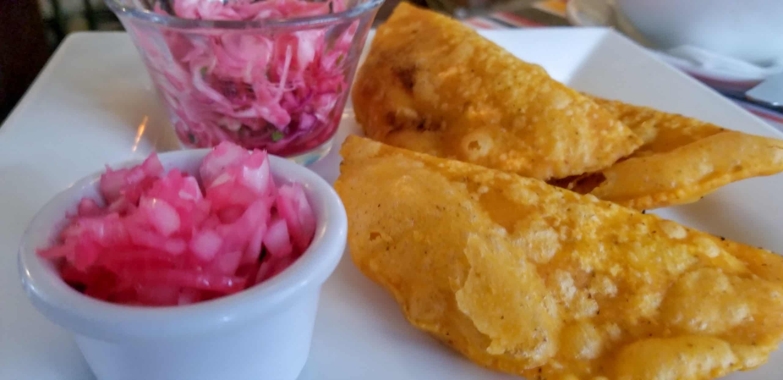 Order it for lunch. Order it for dinner. These little fried tortillas topped with the shredded onion, cabbage, chicken, tomato, cheese, avocado, maybe jalapenos. If you want an extra kick – throw some Marie Sharp’s hot sauce on it. (If you haven’t heard of or tried Marie Sharps and you’re a hot sauce fan, you are in for a real treat!)